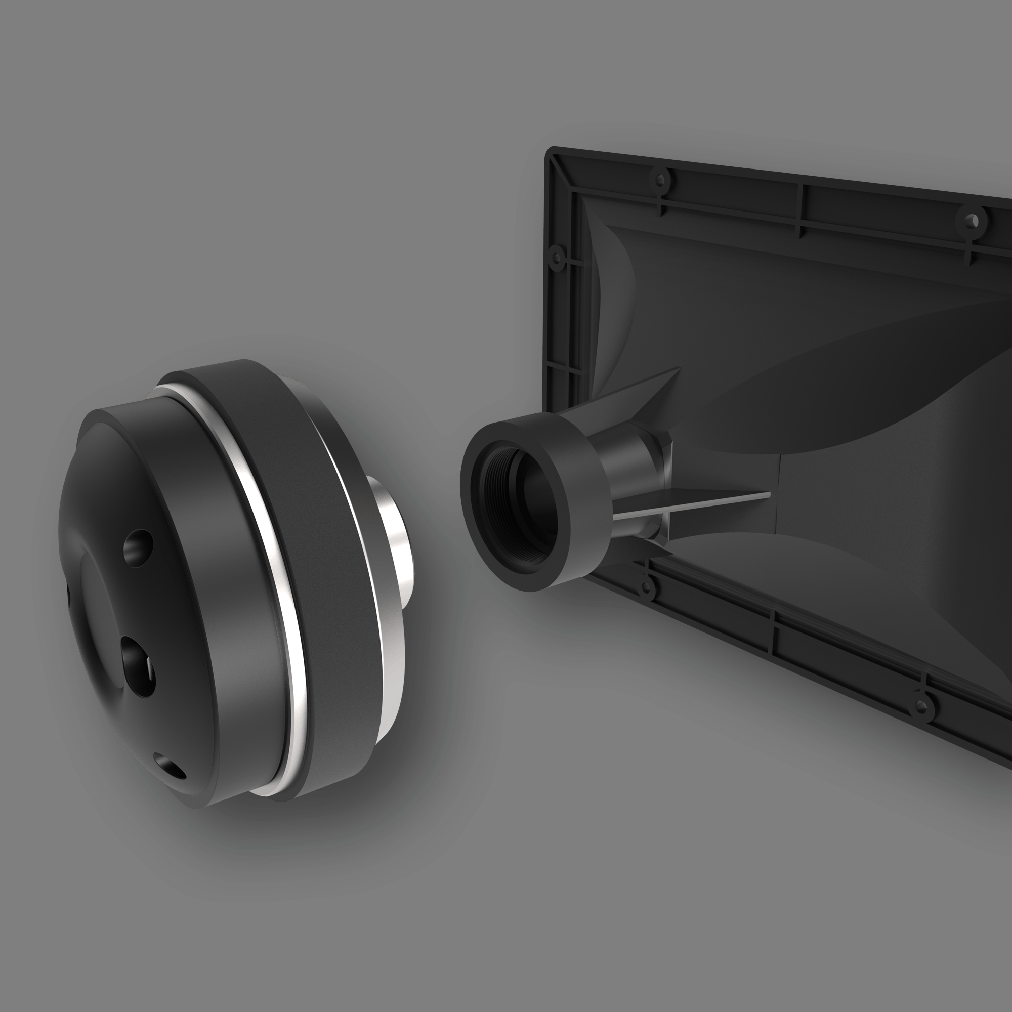 The titanium diaphragm high-frequency driver has a new wide dispersion phase plug for a wider, more accurate sweet spot.